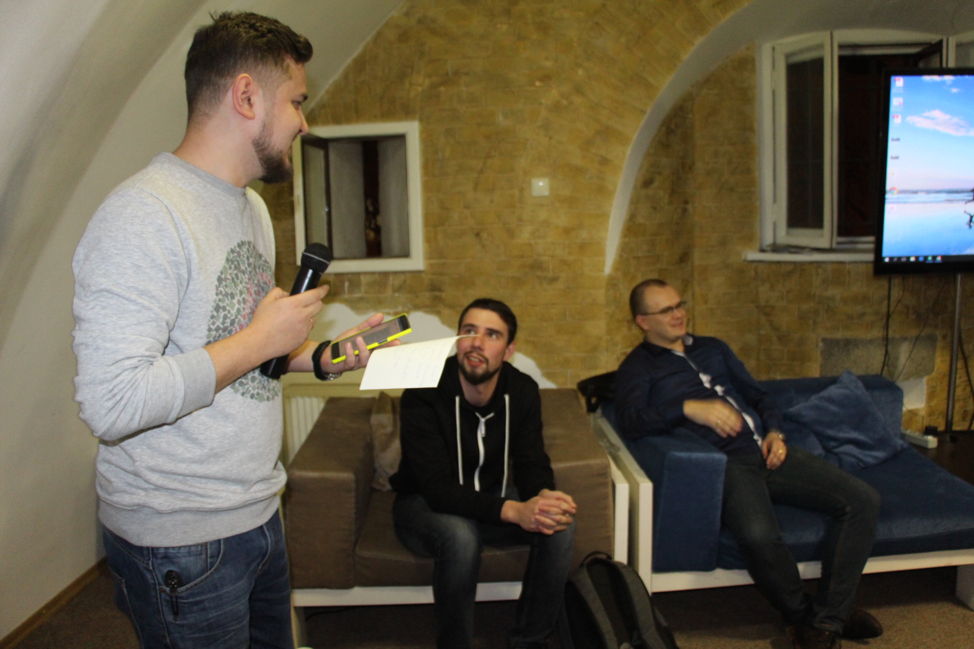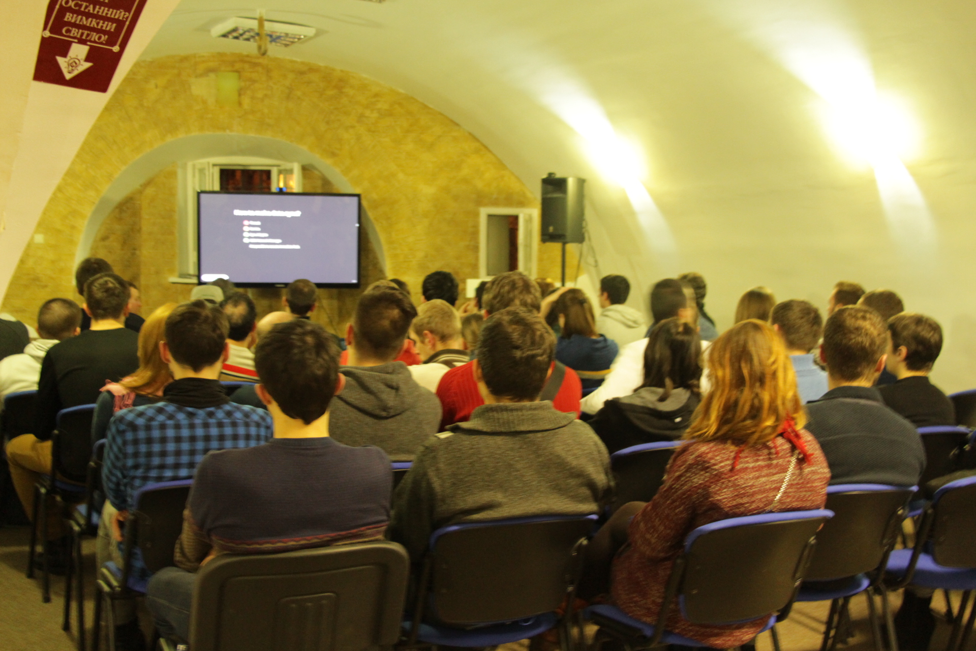 The event was held under the dim light so that viewers could better see the presentation of Dmitro Danilik made... on a black background! The hospitable atmosphere of iHUB Kyiv resembled a ship's cabin, where experienced sea wolves shared secrets with the younger ship's boys.