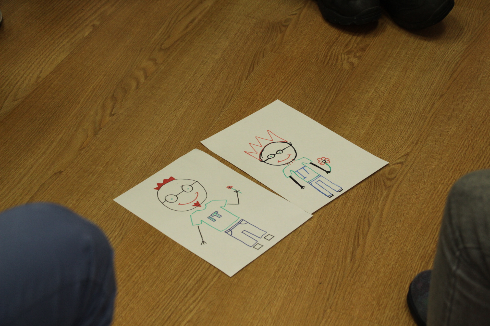 And then a Man wearing a crown appeared. But first the participants had to work hard. They were divided into three teams. The first team saw a picture of the Man, the second listened attentively and described the image to the third team which had to draw it. The portraits looked very alike!