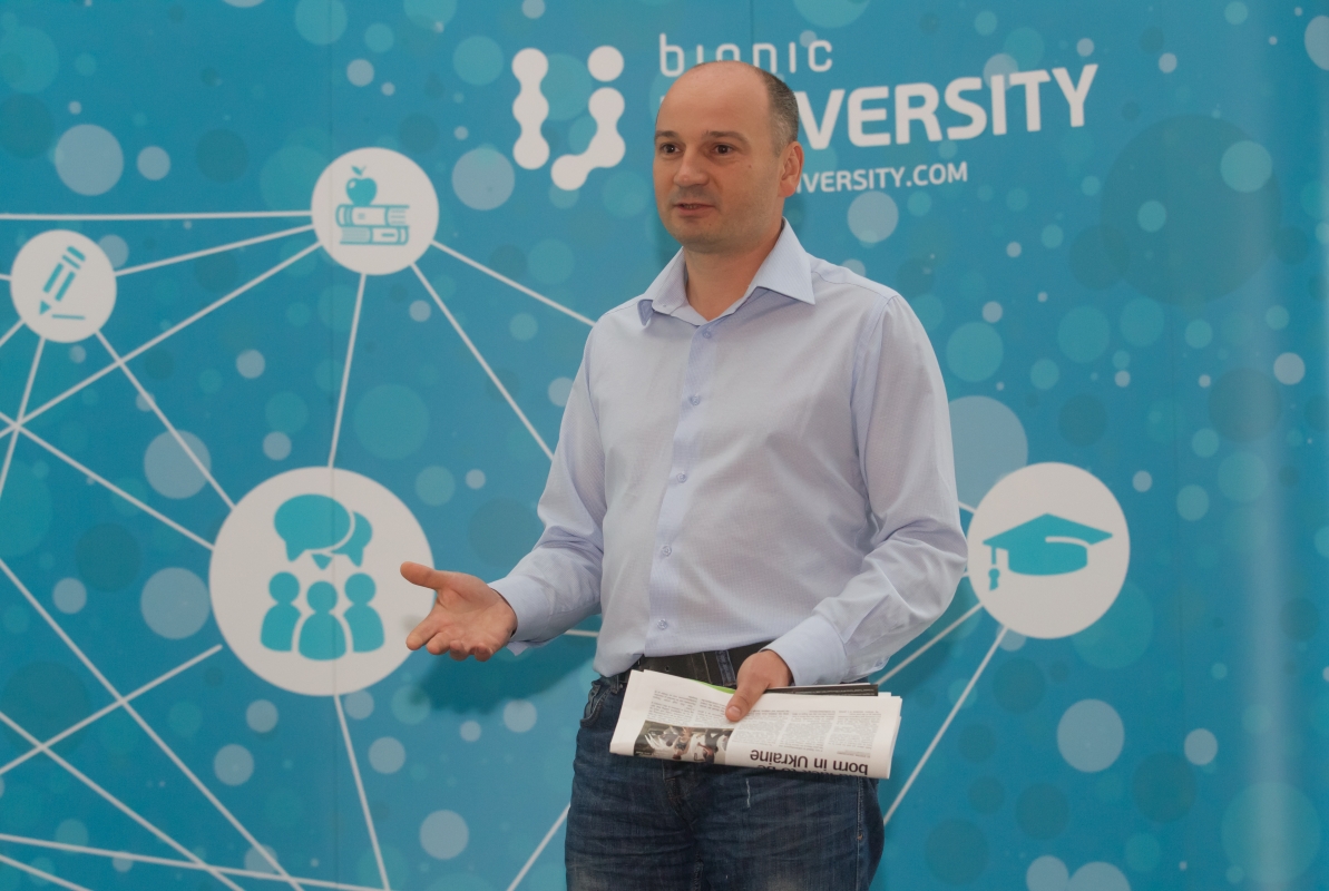 Открытое обсуждение объединило около 100 настоящих и будущих слушателей BIONIC University. О своем опыте и интересных случаях из жизни украинского IT-бизнеса рассказали Дмитрий Филипов, Вице-президент по организационному развитию компании Miratech и Александр Курбатов, генеральный менеджер компании EngagePoint.